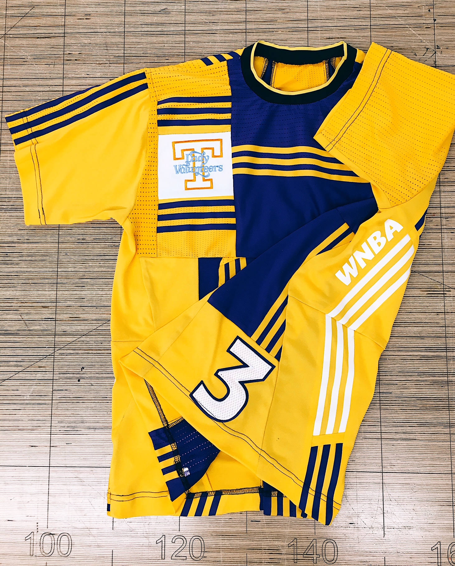 "Chop-Shop" is a process that re-invents the adidas archive through deconstruction and reconstruction. Each piece is made of re-worked vintage garments that are hand crafted into new pieces.