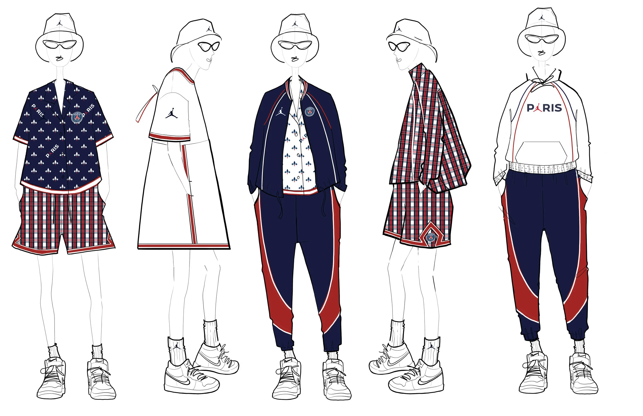 SU21 collection for Jordan Women’s in collaboration with Paris Saint Germain. Tied to the newest Jordan x PSG kit, this collection explores classic fan-wear nostalgia juxtaposed with the idea of Parisian ease through the lens of basketball culture. PSG's 2020-21 home shirt brings back the iconic Hechter design for the first time since 2010-2011. It also serves as the starting point for this collection.
